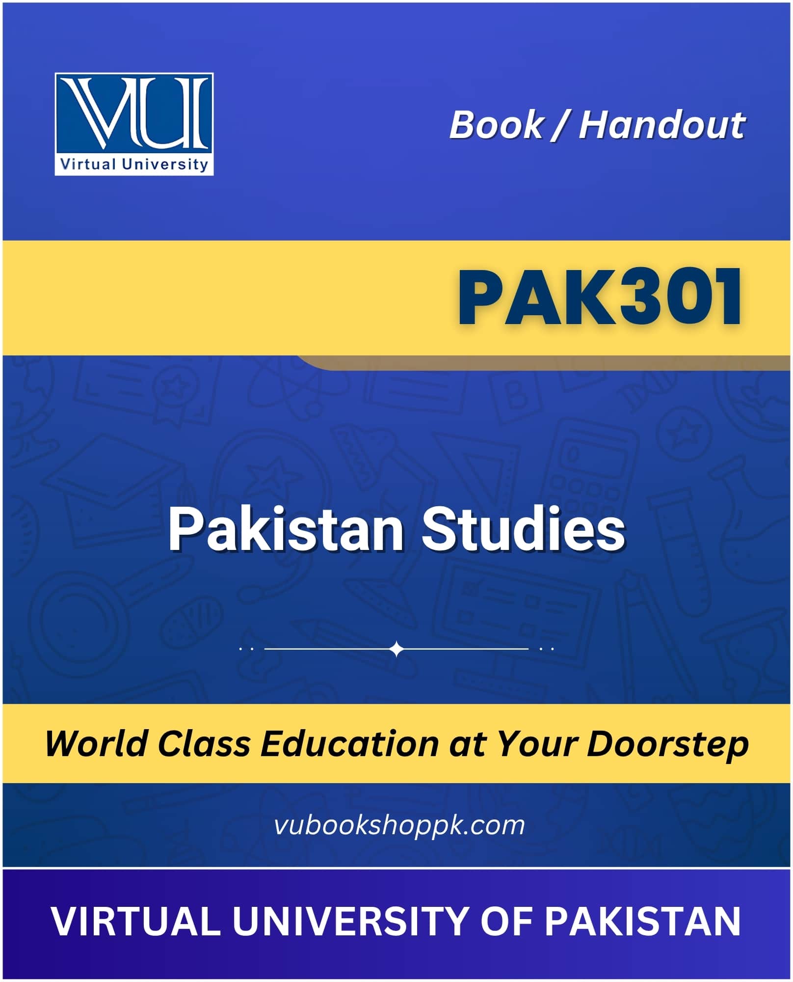 Order the PAK301 – Pakistan Studies Book now through VU Bookshop Online and enhance your learning experience at Virtual University. By purchasing from the Virtual University Bookshop, you gain access to accurate and updated resources that support your academic journey.